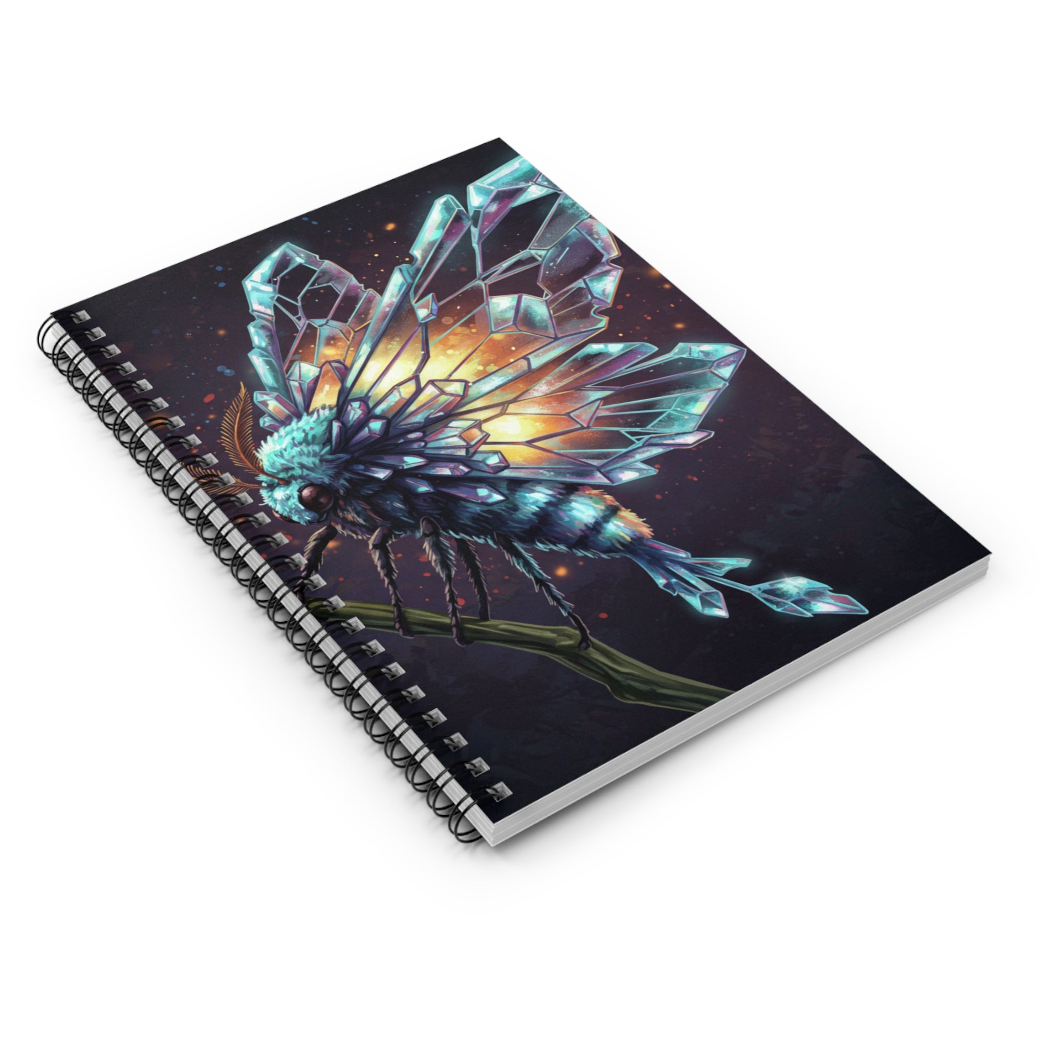 This spiral notebook pairs sturdy, textured covers with luminous, gem-like artwork to make everyday writing feel a little magical. Inside, creamy 90 gsm ruled paper takes pen and pencil with confidence — smooth enough for journaling, note-taking, and sketches. The metal spiral lets the book lie flat or fold back for comfortable one-handed writing, while an inner document pocket keeps loose notes or receipts tucked and organized. At 6" x 8", it’s compact enough for a bag but spacious enough for thoughtful pages. Carry it to classes, sketch sessions, or late-night idea bursts — the crystalline moth on the cover invites curiosity and quiet focus.
