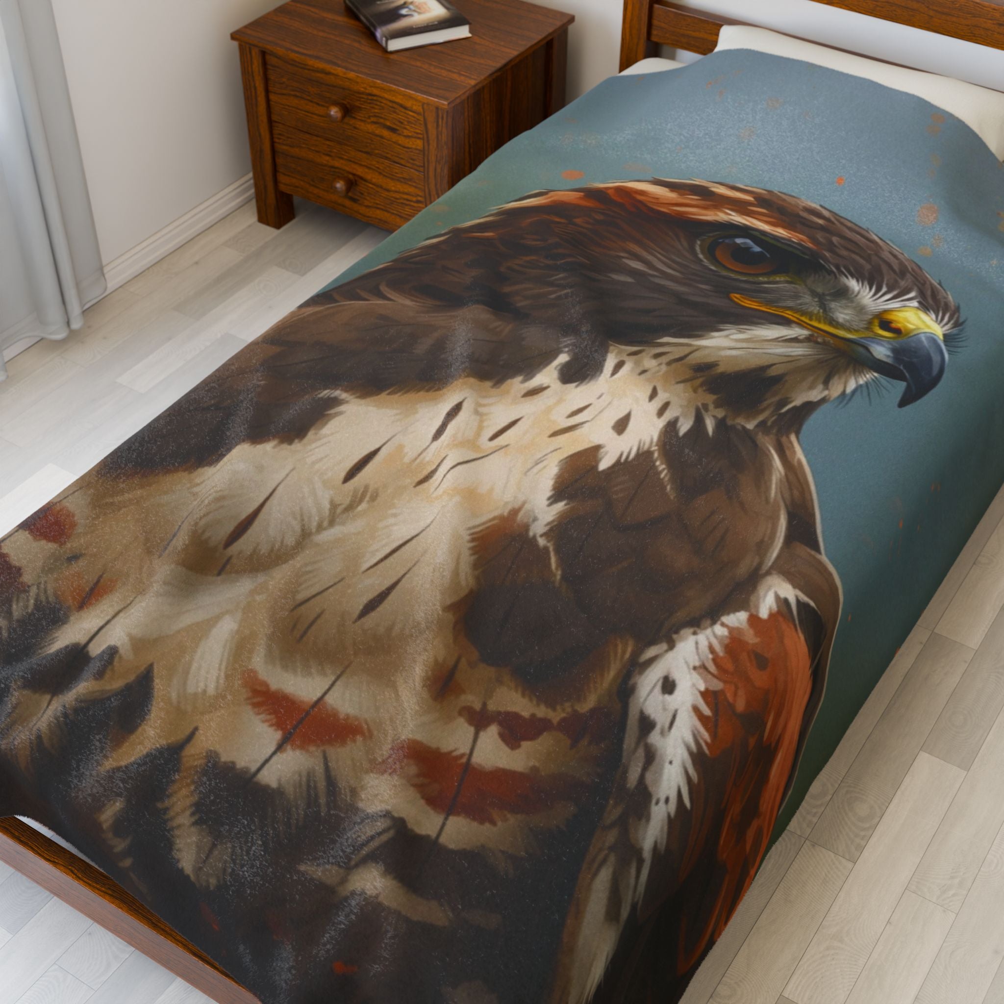 Wrap yourself in quiet strength with this velveteen plush blanket featuring a detailed hawk portrait. The soft, medium-weight fabric feels like a warm hush — the kind that invites you to slow down, rest, and watch the sky. Rich earth tones and crisp printing make the hawk’s gaze and feather texture come alive on one side, while the reverse stays smooth and neutral. Drape it over a reading chair, bring it to an outdoor evening by the fire, or keep it on the couch for thoughtful mornings with coffee. Built to hold its shape and color, it becomes a familiar piece in a nature-lover’s space — steady, resilient, and quietly beautiful.