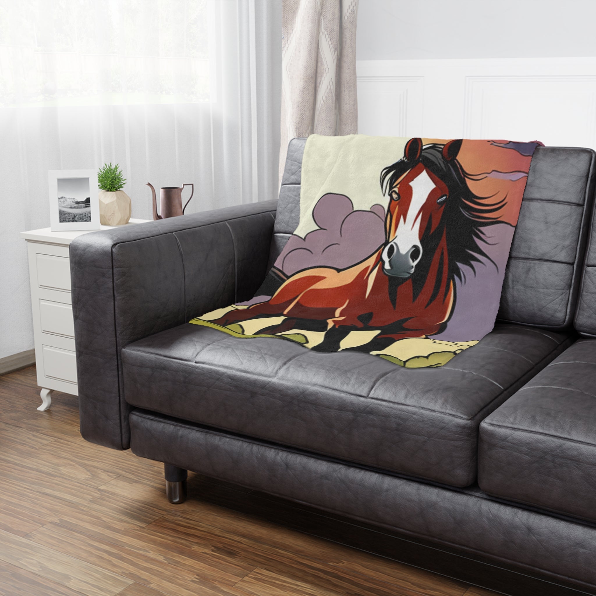 • Load image into Gallery viewer, Horse Grazing in Grass Minky Blanket