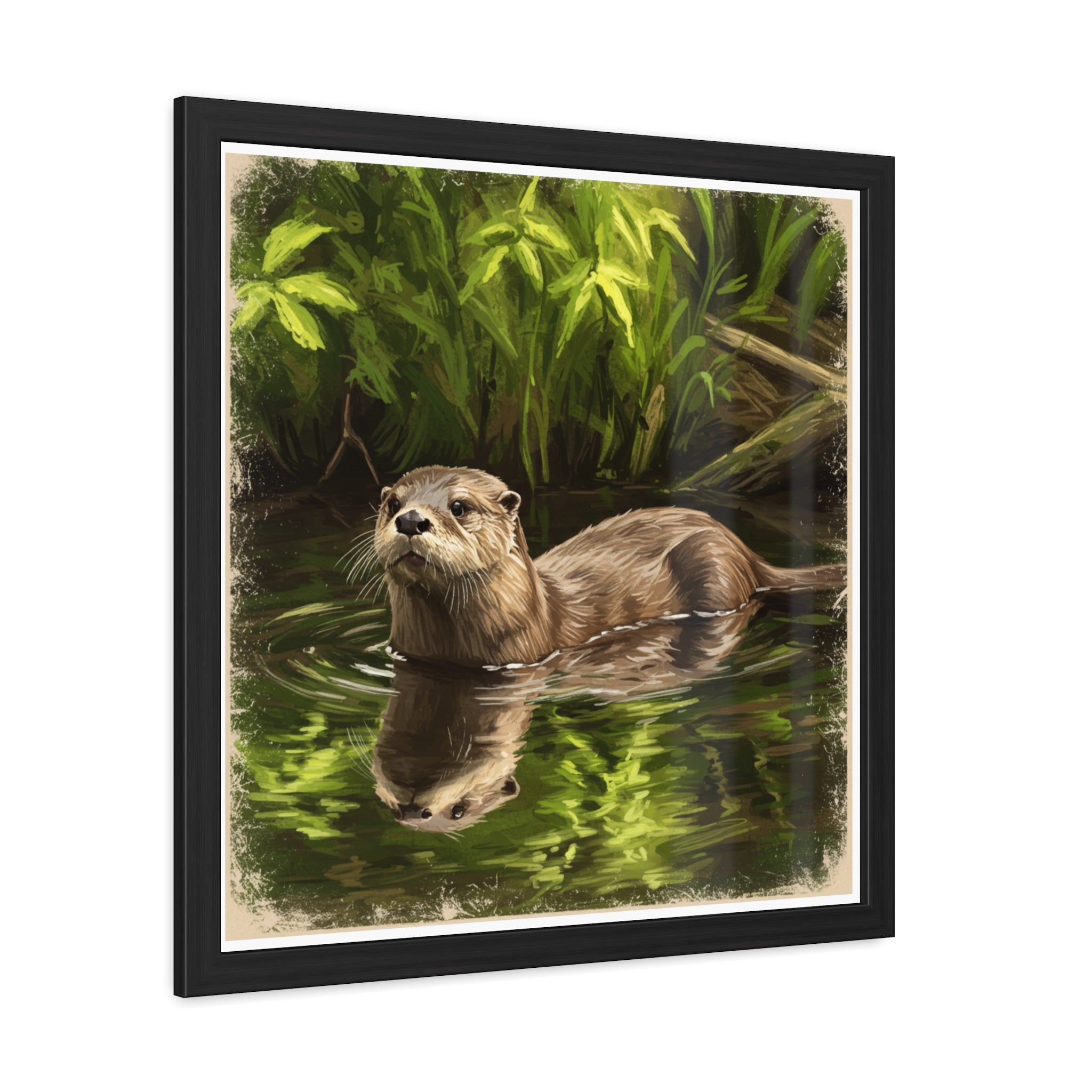 A framed poster that brings a quiet riverside moment into your home. Lush greens and warm brown tones capture an otter gliding through reflective water, printed with vivid Mimaki UV inks that keep brushstroke detail and color depth. The image sits behind a clear Perspex cover and a handcrafted wooden frame, arriving ready to hang with an enclosed back and wire kit. Choose from multiple sizes and orientations to fit a cozy reading nook, gallery wall, or nature-themed room. Made in the UK from globally sourced parts, this piece adds a calm, nature-forward touch to everyday spaces.