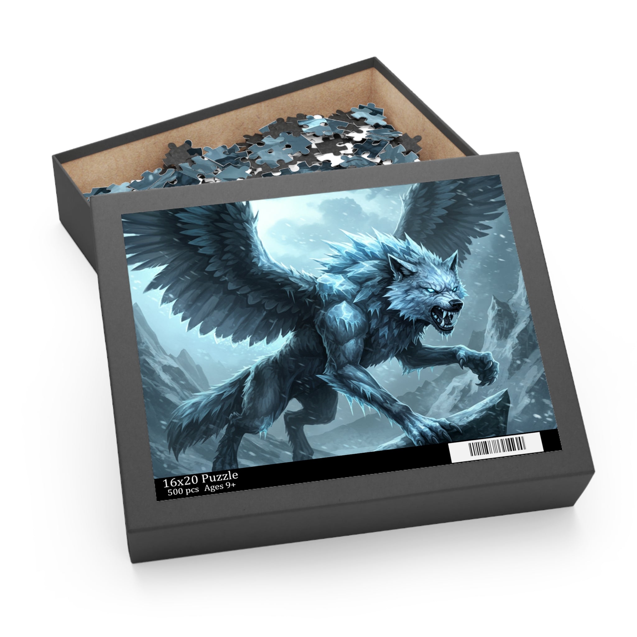 This striking puzzle brings a stormy, supernatural scene to life: a winged wolf frozen mid-roar beneath a pale moon. Cool blues and icy grays create a moody, atmospheric image that draws you in piece by piece. As you assemble the glossy chipboard pieces, the creature’s textured fur and feathered wings emerge with vivid clarity, making each moment of progress feel like unlocking a myth. The sturdy paper box shows the finished image for easy reference and keeps the set gift-ready. Whether you spread it out on the table for a focused evening or return to it across multiple sessions, the puzzle invites immersive, contemplative play and makes a dramatic display once completed.